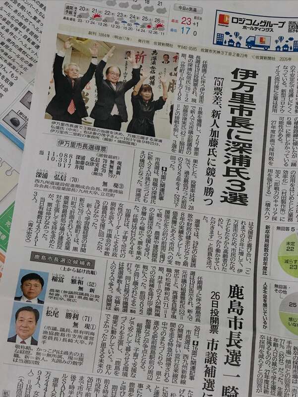 吉野ヶ里・有田・伊万里の首長選が終わり、