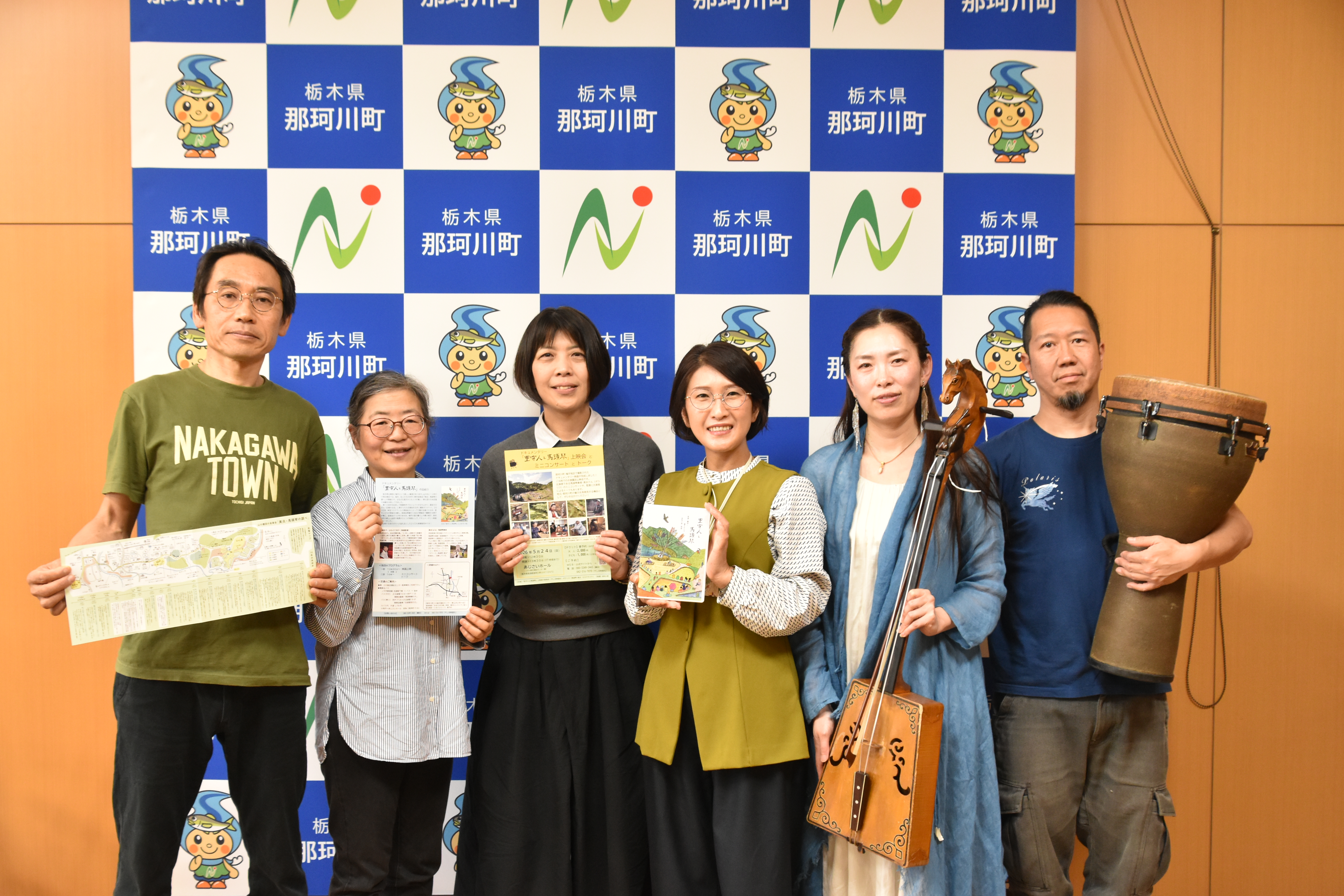 最後の「万馬の轟」では、ジャンベのリズムに乗って、町長室から何万頭の馬たちが解き放たれ、方々へ駆け巡っていくようでした。まさに今ここ、旧馬頭町のこの地から、上映活動がスタートした!と実感した瞬間でした。部屋を出ると、フロアにいらっしゃった職員の方々が、みなさん笑顔で立っていらっしゃって挨拶してくださいました。フロア全体にも、馬頭琴の音色が響きわたっていたのでした。