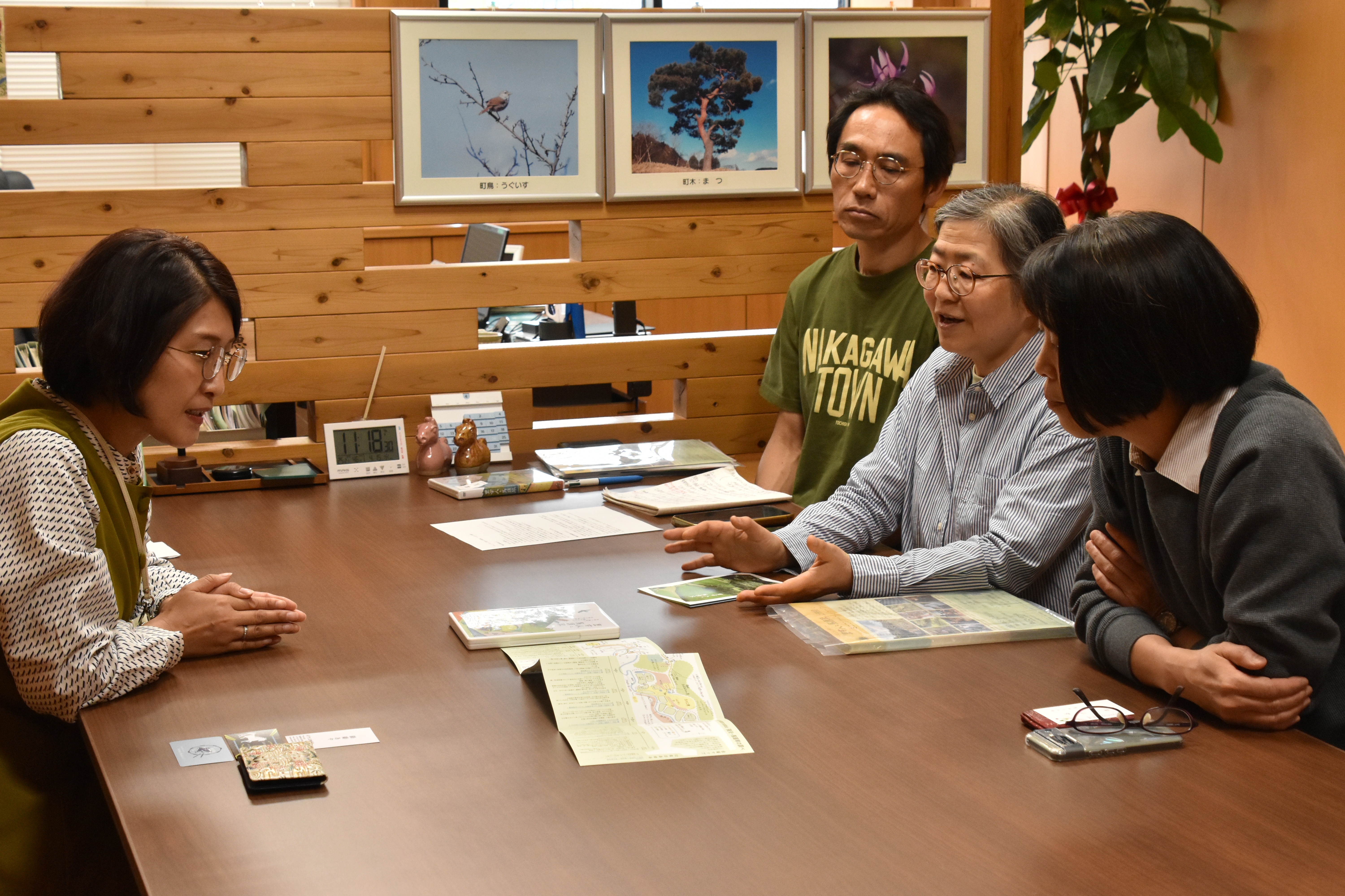 益子純恵町長は昨年11月に就任した初の女性町長、40代のお若さで三人のお子さんの中には、映画にも出てくる梅平の青年(当時は少年)と同級生でもありました。お会いした時には既にDVDを観て下さり、音楽会や梅平の暮らしの様子、そして那珂川町の魅力や町民たちの気質などなど、色々なお話をしながらあっという間に時間が過ぎました。5月24日の上映会にもお越しいただけそうとのことで、お忙しい中大変ありがたい!です。