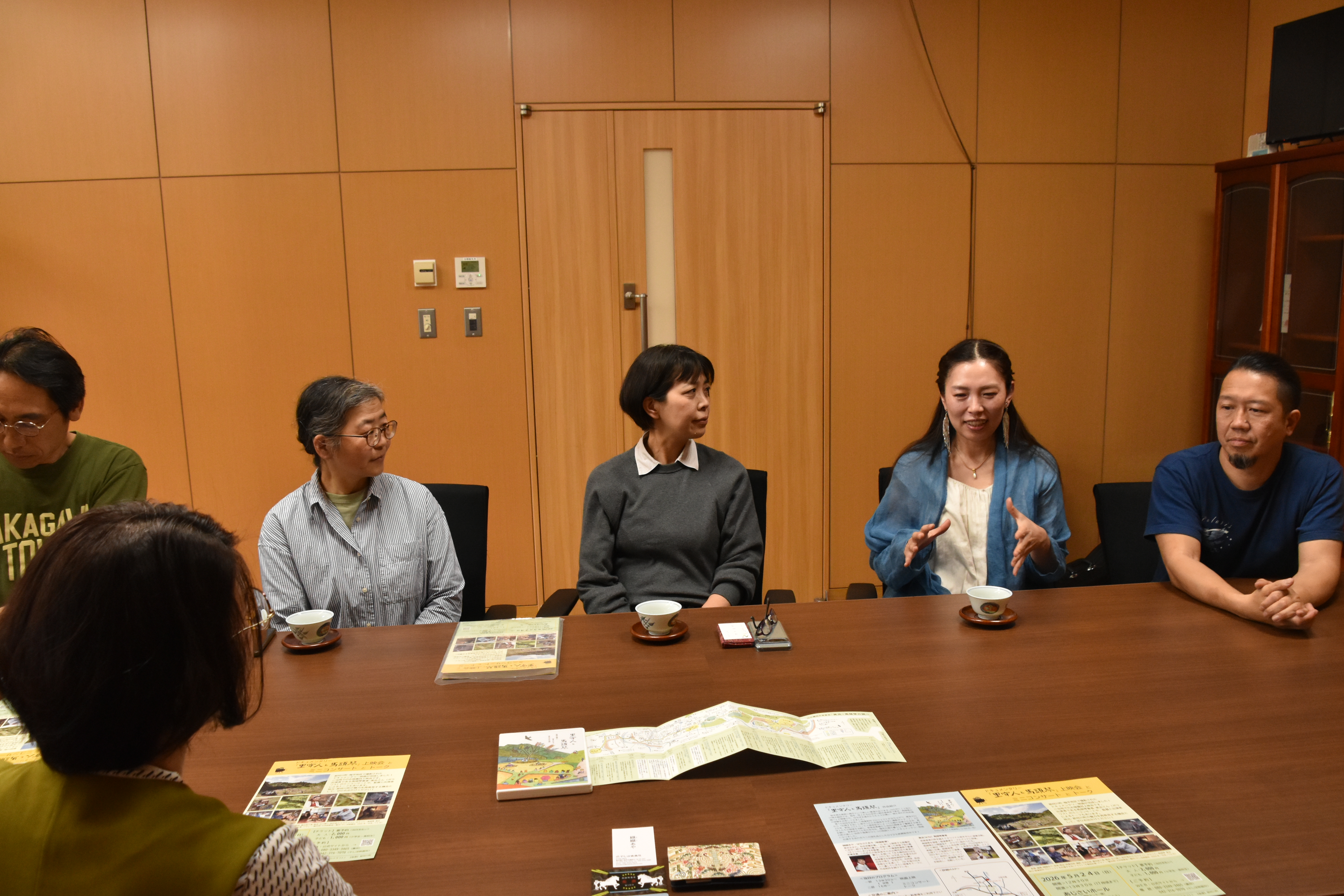 4月15日、ヒロクラフトさんの廣田さんご夫婦、『里守人と馬頭琴』監督の纐纈あやさん、そしてポラリスの美炎さん、前田さんが町長室にいらして下さいました。
