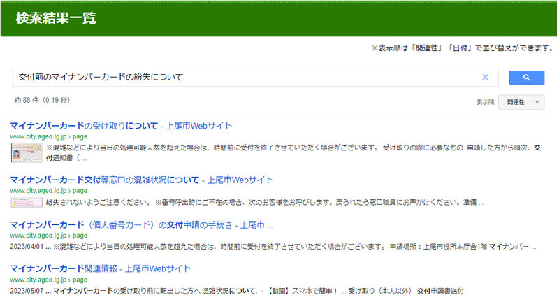 市政報告を作成するためにここ最近起こった、交付前マイナンバーカードの紛失や、生活保護費返還のための納付書を誤ってほかの人の封書に入れて送ってしまった件など上尾市の事務処理ミスの再発防止策について調べようと思ったのですが、ほとんどの行政のミスについての情報が担当部署のページから削除され、検索しても結果に反映されないようになっています。