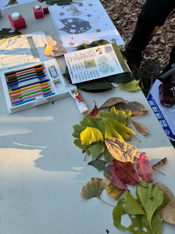 落ち葉をスタンプで切り抜くクラフトコーナーも。