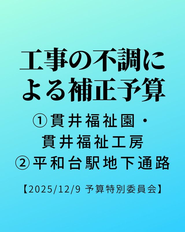 #練馬区 #練馬区議会議員 #練馬区議会 #貫井福祉園 #貫井福祉工房 #平和台駅地下通路 #補正予算 #工事 #入札不調 #環状8号線横断地下通路 #環八 #放射35号線