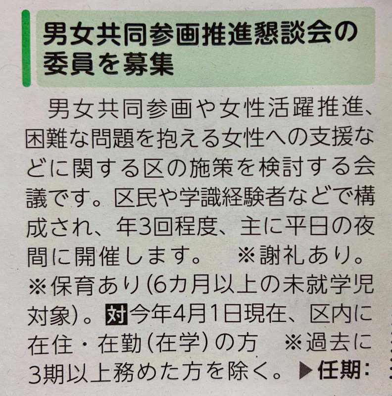 #練馬区 #男女共同参画推進懇談会委員 #公募委員 #ジェンダー #男女共同参画センターえーる