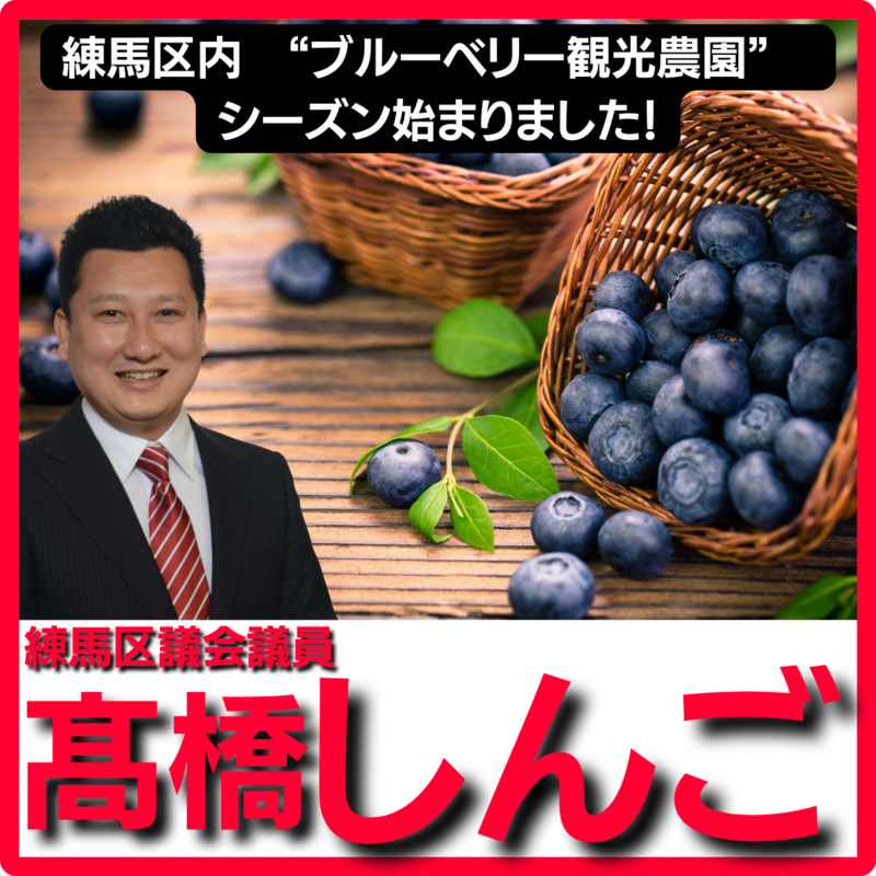 ホーム>政党・政治家>高橋 しんご (タカハシ シンゴ)>【練馬区 “ブルーベリー観光農園”オープンの時期 練馬区議会議員たかはし慎吾】
