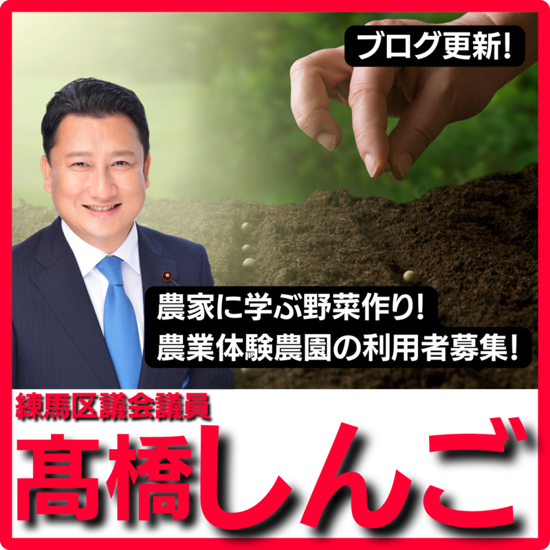 ホーム>政党・政治家>高橋 しんご (タカハシ シンゴ)>【練馬区 農家に学ぶ野菜作り!農業体験農園の利用者募集! 練馬区議会議員 髙橋しんご】