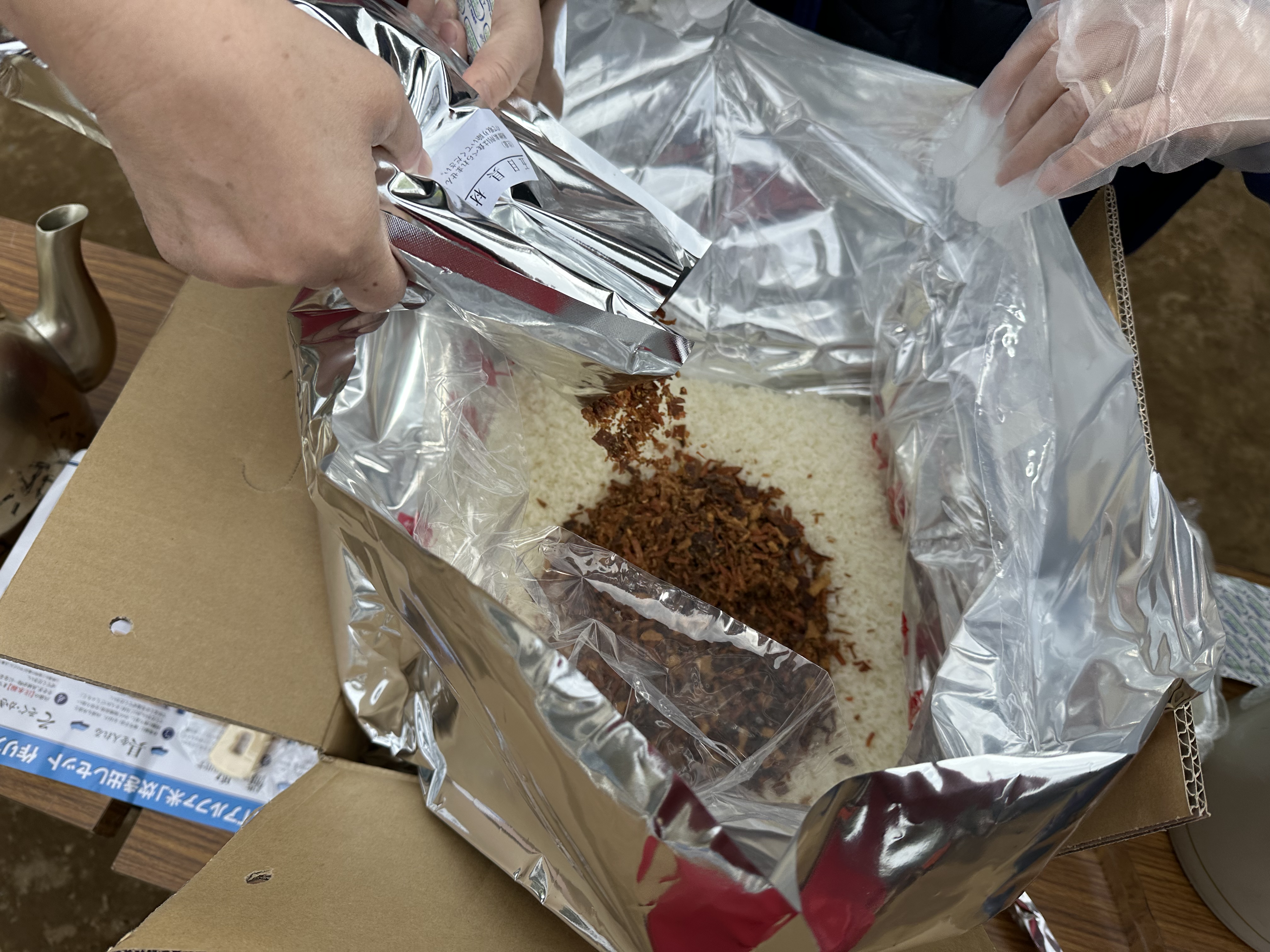 私もアルファ米の訓練のお手伝い。