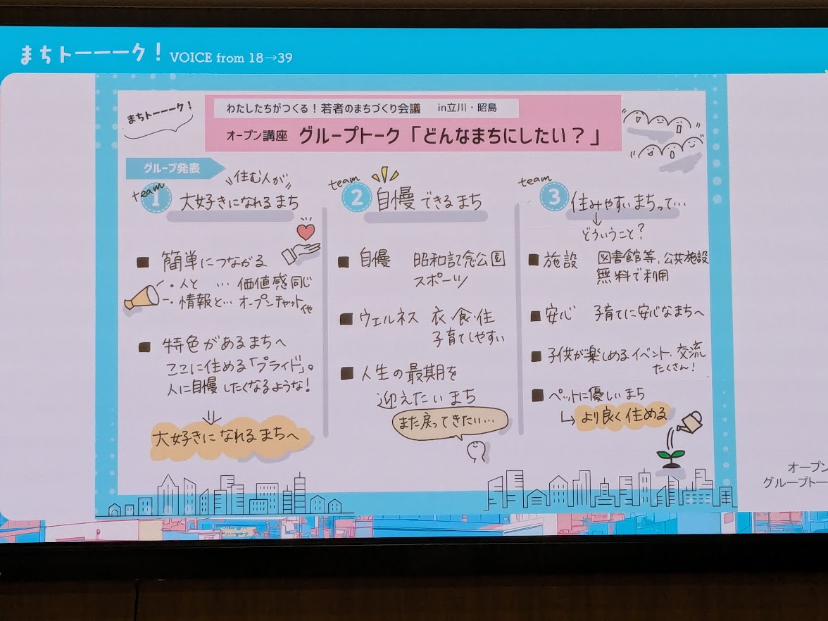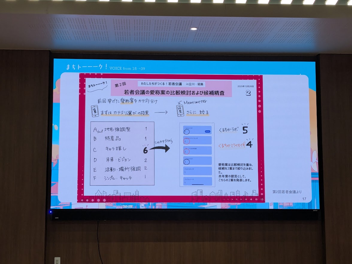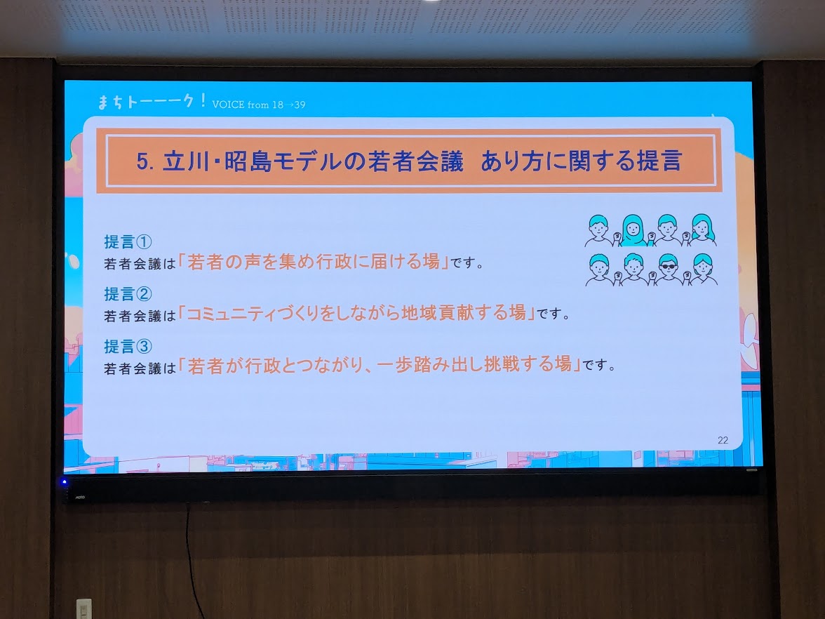 日曜日に、昭島市のイーストテラスで開催された若者会議の提言発表会を傍聴してきました。