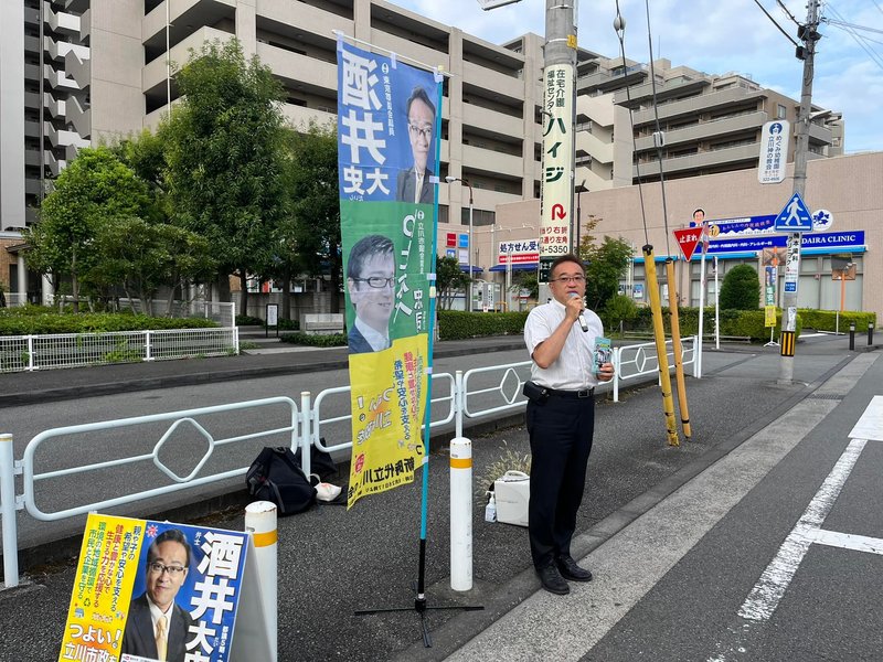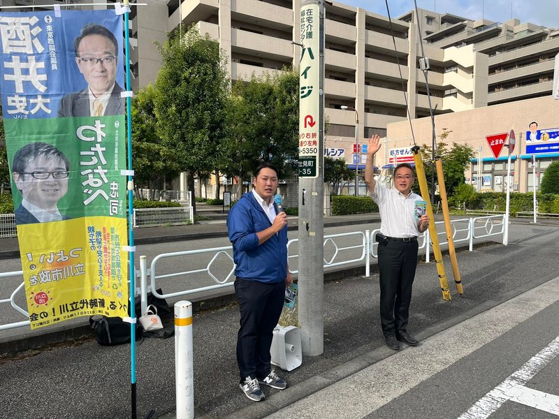 今朝は西立川駅より、#酒井大史 都議とともに支援者の皆様と渋谷区から #中田たかし 都議も駆けつけていただき朝活です。とうとう #市長選 告示日も今週末となりました。他陣営活動も活発化、ぜひ政策にご注目ください。