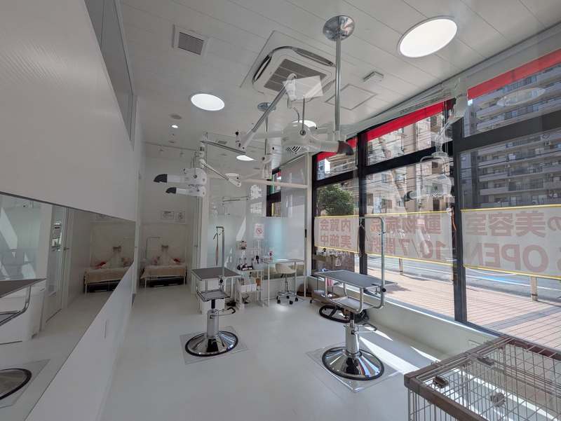 広々として清潔感あふれる処置室や診察室があり、大切な家族を預かるための「ホテル」も併設されており、タオルやおもちゃの持ち込みも可能で、心身のケアにも配慮されています。