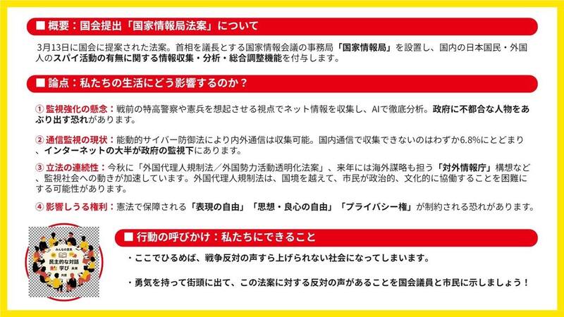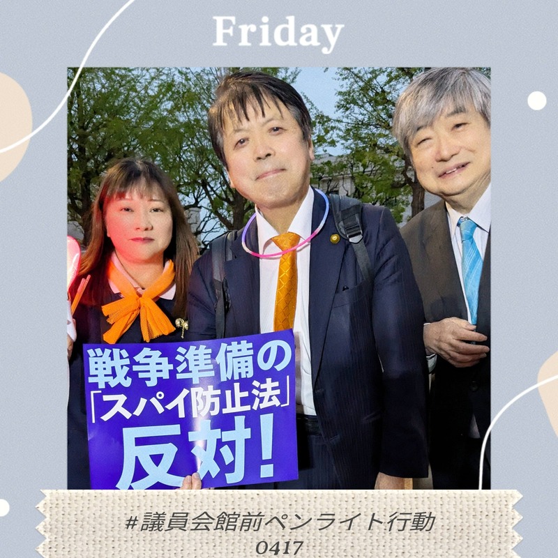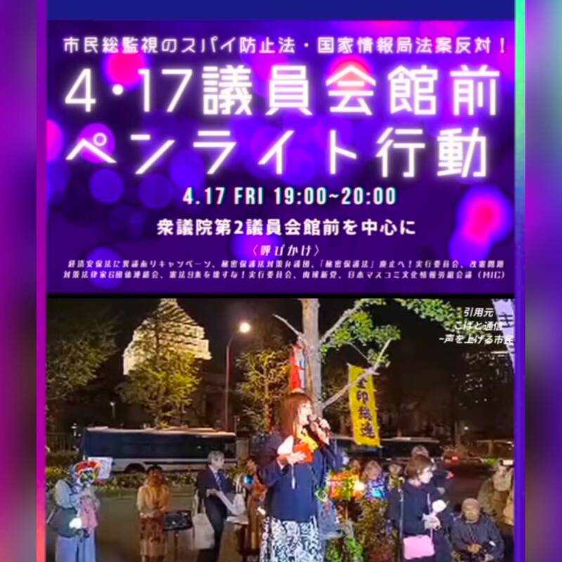 市民総監視のスパイ防止法・国家情報局法案反対!4・17議員会館前ペンライト行動/戦争反対の声も上げられなくなる!?