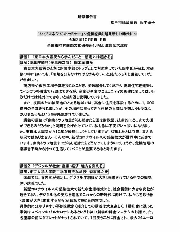 ホーム>政党・政治家>岡本 ゆうこ (オカモト ユウコ)>松戸市議会 令和2年度政務活動費 収支報告書閲覧終了〜経理責任者会議は5月24日です