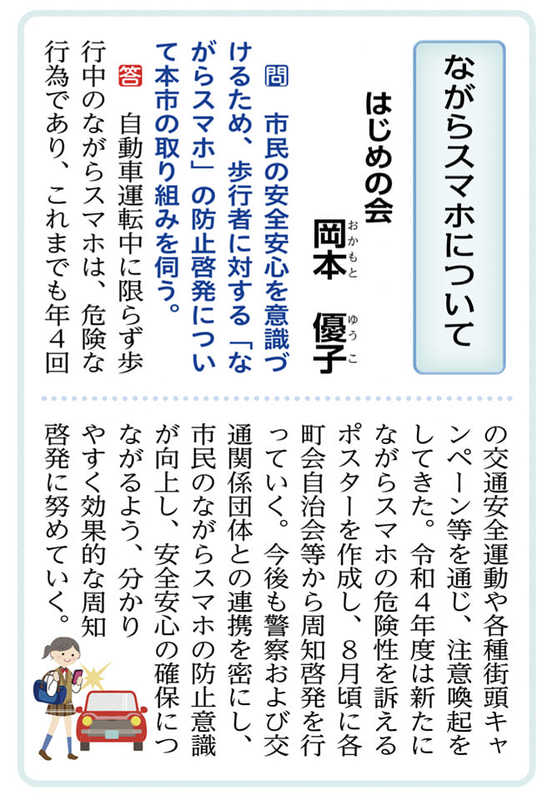 ◆一般質問の掲載は 「ながらスマホ 」をセレクトいたしました。