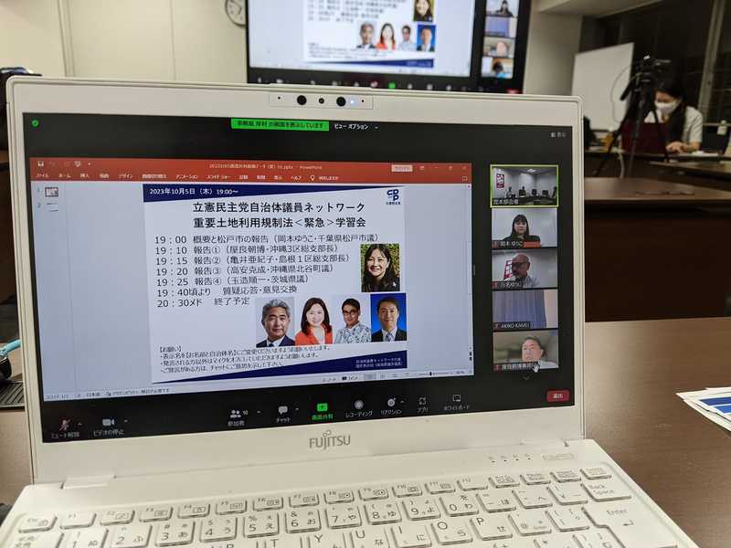 立憲民主党 自治体議員ネットワーク主催の 土地規制法 緊急学習会がオンラインでおこなわれました。