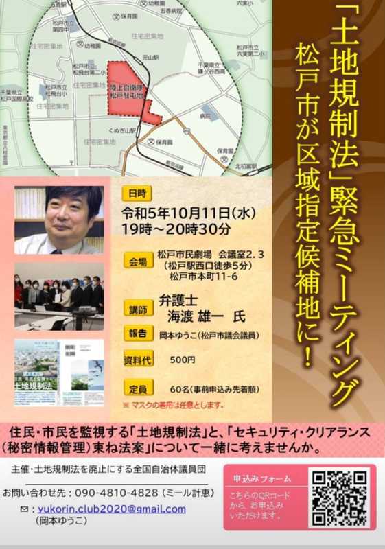 【松戸市が区域指定候補地に!2023/10/11開催「土地規制法」緊急ミーティングのご案内】
