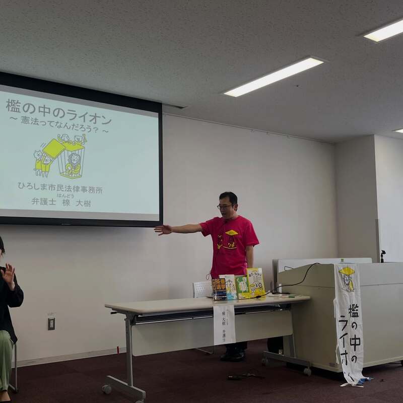 『檻の中のライオン 憲法がわかる 46のおはなし』、『けんぽう絵本 おりとライオン』著者である弁護士 楾 大樹(はんどう たいき)氏による憲法に関するお話を聴きました。