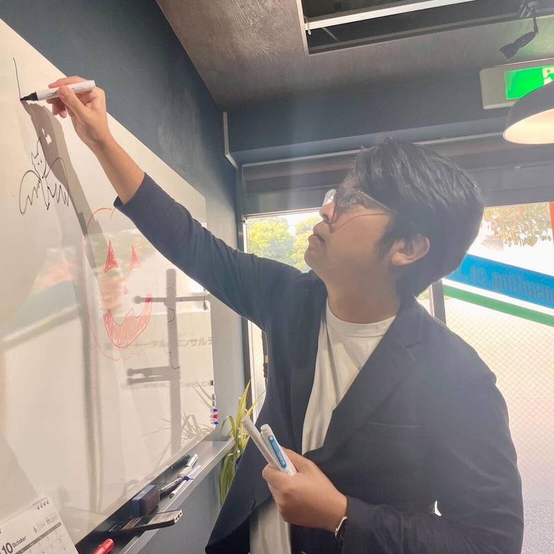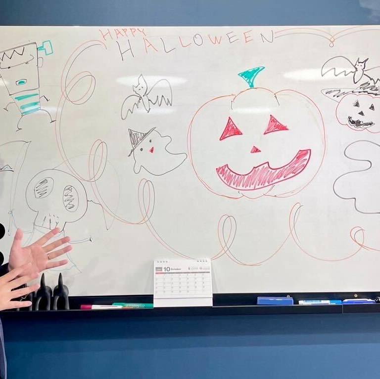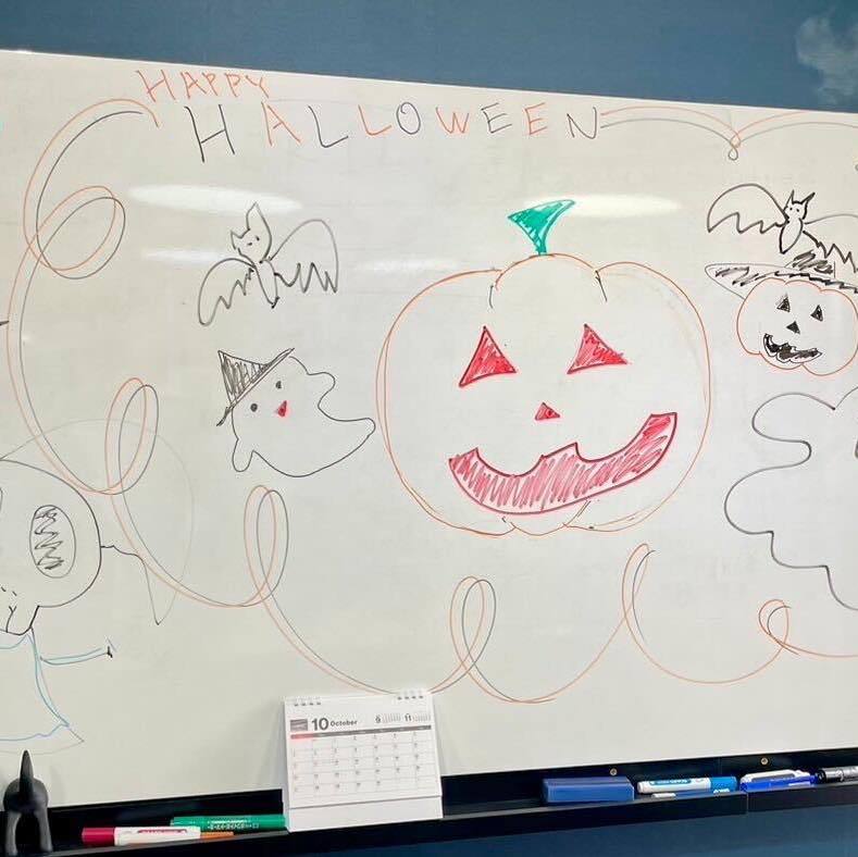 本当は私も仮装して迎えたかった所ですが、急遽ホワイトボードに絵を描いてお出迎えしました🎨