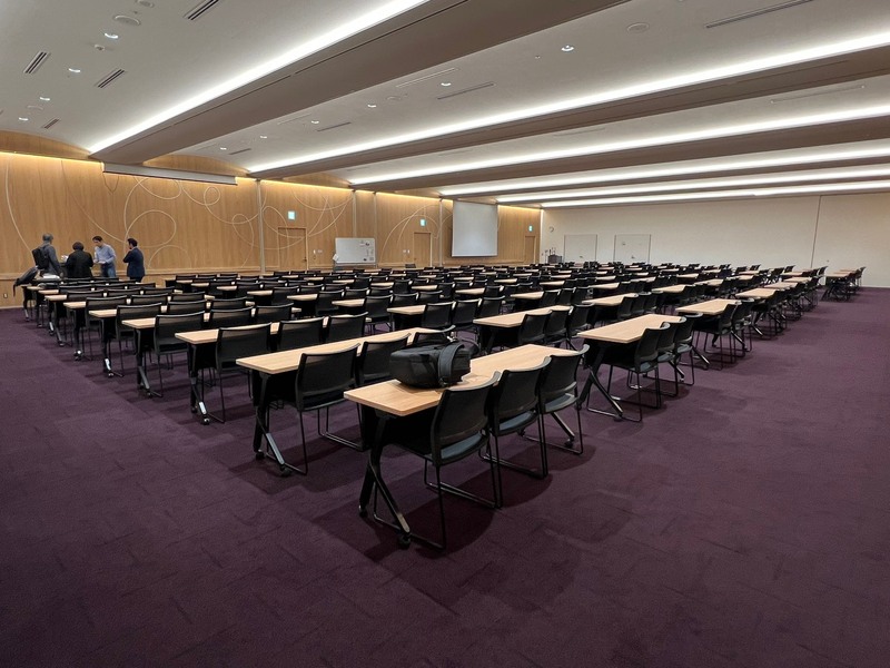 今回、最大収容人数270人という大きな部屋をお借りしていますので、余裕を持ってご着席いただけるレイアウトが取れます。