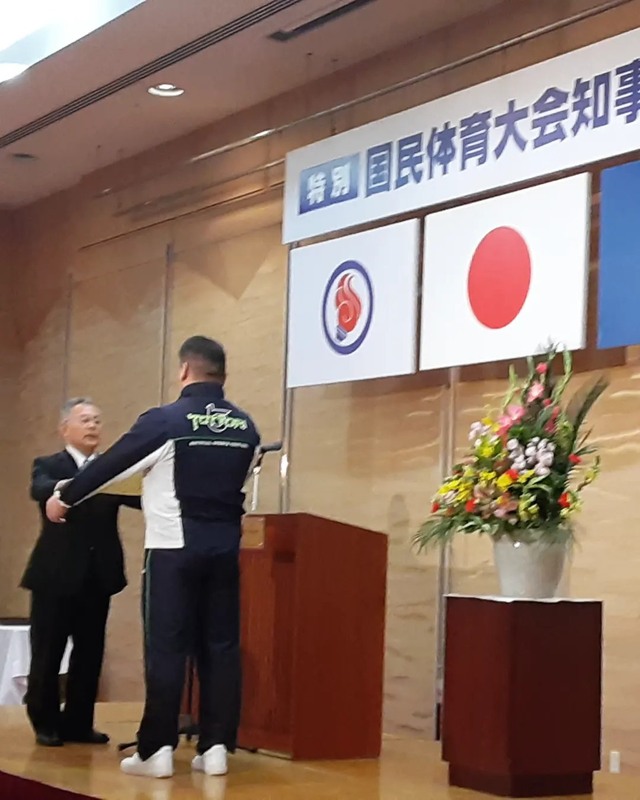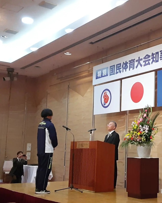 「燃ゆる感動かごしま国体」知事表彰に参列。福生小からの同級生、米子南高・寺井一正先生(ローイング競技)が監督で表彰に選ばれました。
