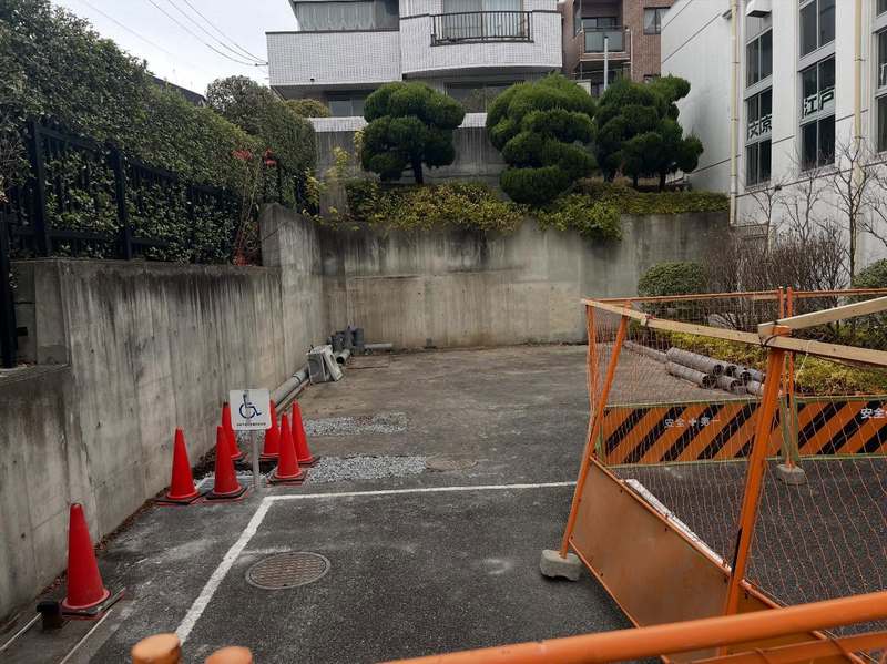 西側玄関前に大きな陥没があり、雨天時の大きな水たまりが課題でしたが、元々設置してあった、町会等の倉庫の移転も完了し、ようやく舗装の工事が始まりました。高台にあるため、地面の空洞化の調査含め、工事が進んでいます。(工事中も体育館の利用は可能です)