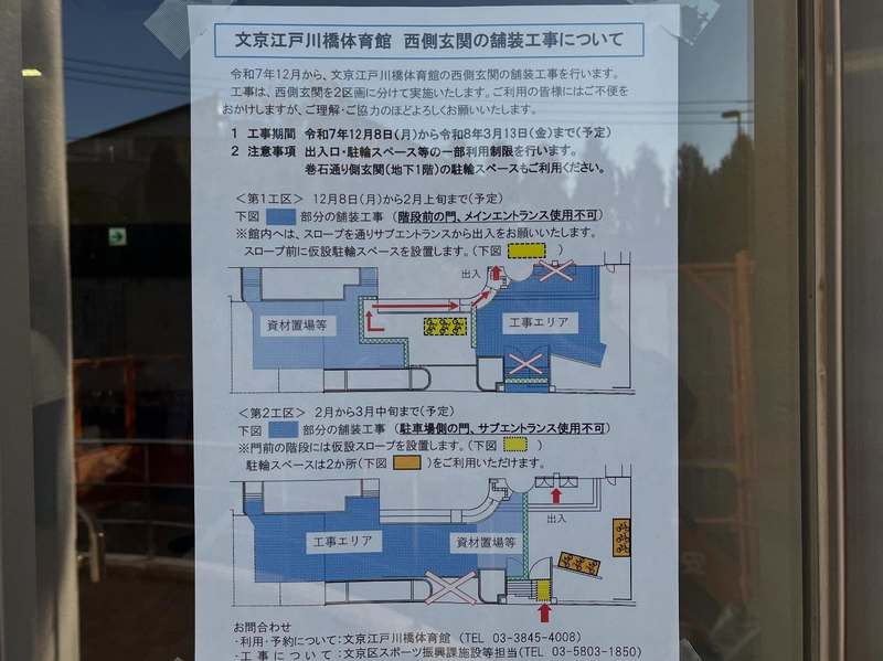 現在、文京区のスポーツ施設、以下2ヶ所の工事を行っています。期間中はご迷惑をおかけします。
