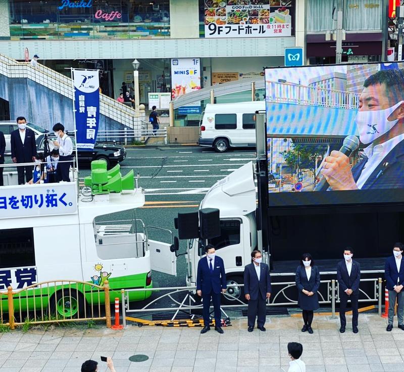 辻清人代議士、朝日健太郎参議院議員、そして6/25からの都議選に向けて、日々全力で活動している中屋文孝都議会議員も駆けつけ、訴えさせて頂きました。