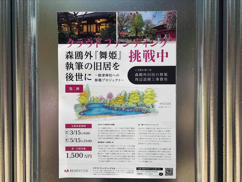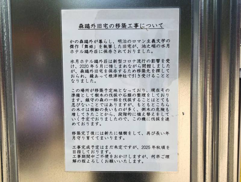 また、境内では森鴎外旧居の移築工事が行われています。2025年秋頃の完成を目指し、現在クラウドファンディグも実施中。ご支援宜しくお願い致します!