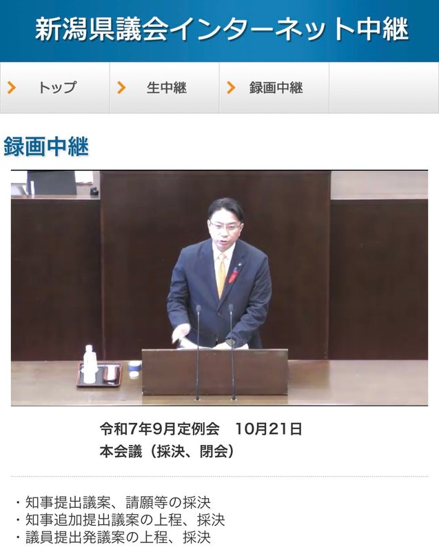新潟県議会 9月定例会が10月21日に閉会しました。