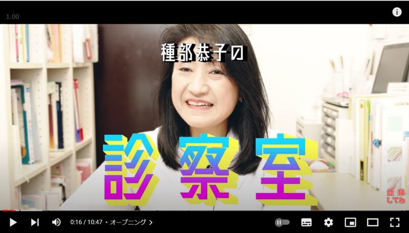 「種部恭子の診察室」というYouTubeチャンネルを開設いたしました。