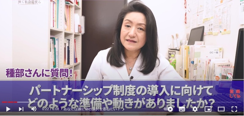 YouTubeチャンネル「種部恭子の診察室」でも、パートナーシップ制度について話しています。