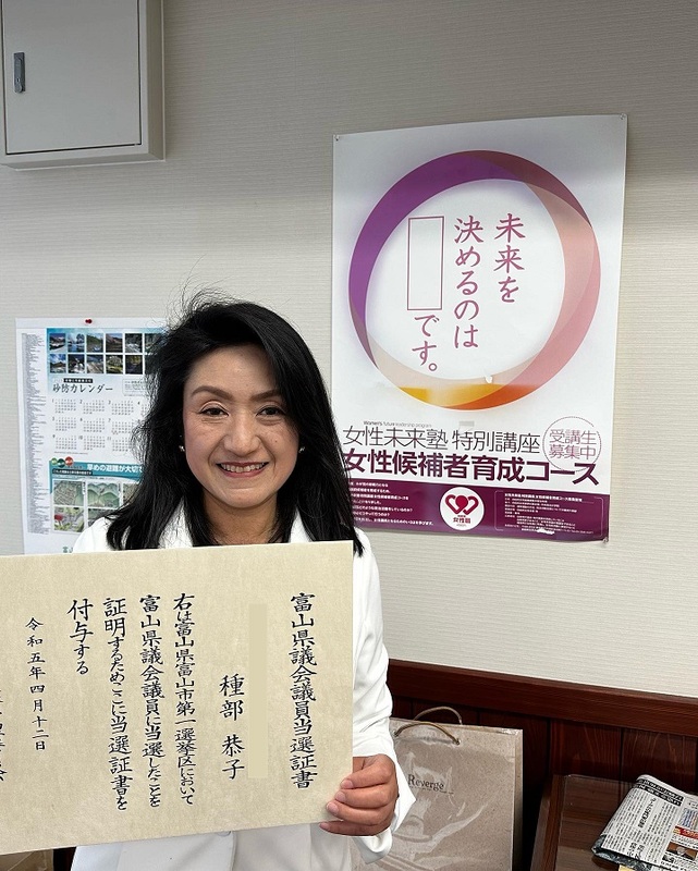 ホーム>政党・政治家>種部 恭子 (タネベ キョウコ)>当選証書を頂きました
