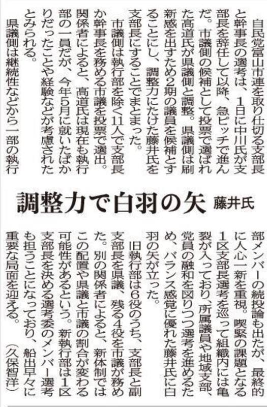 ホーム>政党・政治家>藤井 だいすけ (フジイ ダイスケ)>昨日9月7日に自民党富山市連合支部の支部長の任を拝命いたしました。