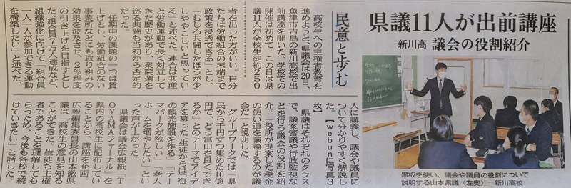 ホーム>政党・政治家>藤井 だいすけ (フジイ ダイスケ)>10月20日に新川高校で主権者教育の授業を行いました。