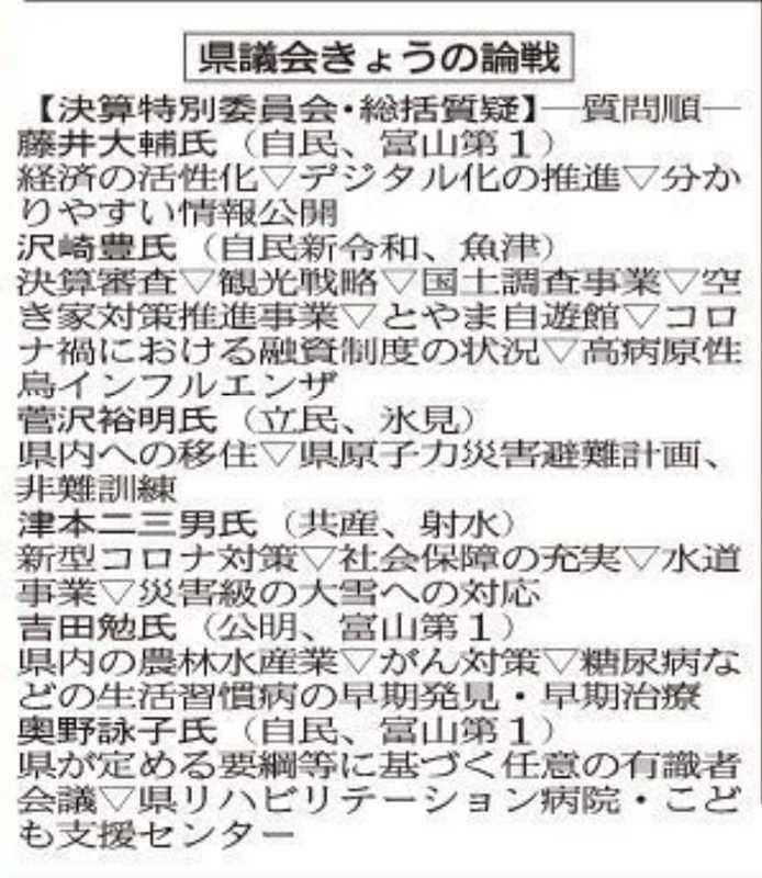 ホーム>政党・政治家>藤井 だいすけ (フジイ ダイスケ)>本日25日の決算特別委員会の総括質疑で登壇いたします。