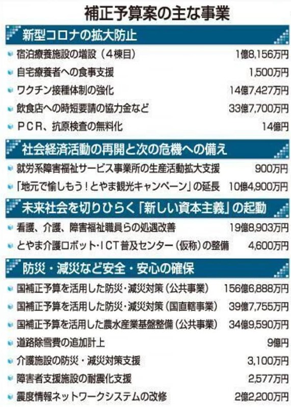 富山県の令和4年1月補正予算案が示されました。