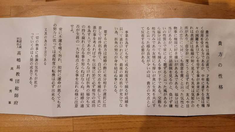 追伸:お正月に引いた高島易断所の占い、当たってるような気が……