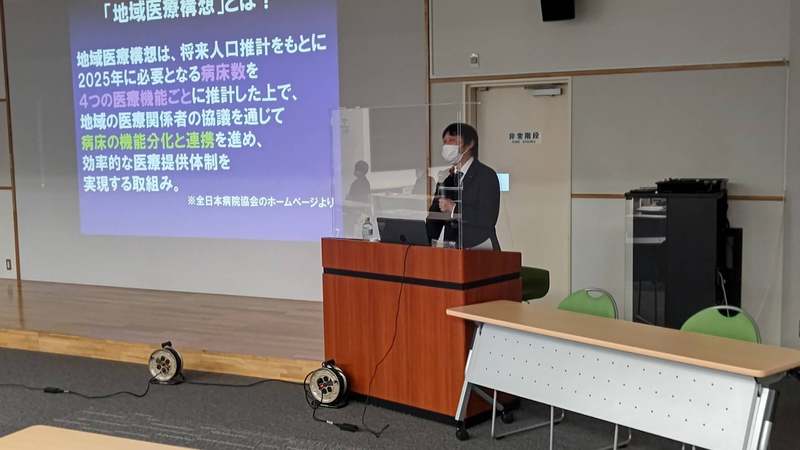 持続可能な地域医療のために、と検討が始まった、地域医療構想と地域包括ケアシステムですが、どちらも目標年度は2025年でした。気が付いてみたら、2025年まであと3年しかありません。あらためて、これから私たちが直面する、人口減少、超高齢社会、財政負担増といった課題について、クイズを交えてお話ししました。