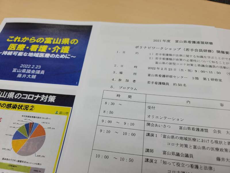 ホーム>政党・政治家>藤井 だいすけ (フジイ ダイスケ)>2月23日に富山県看護連盟主催の研修会で講師役を務めました。