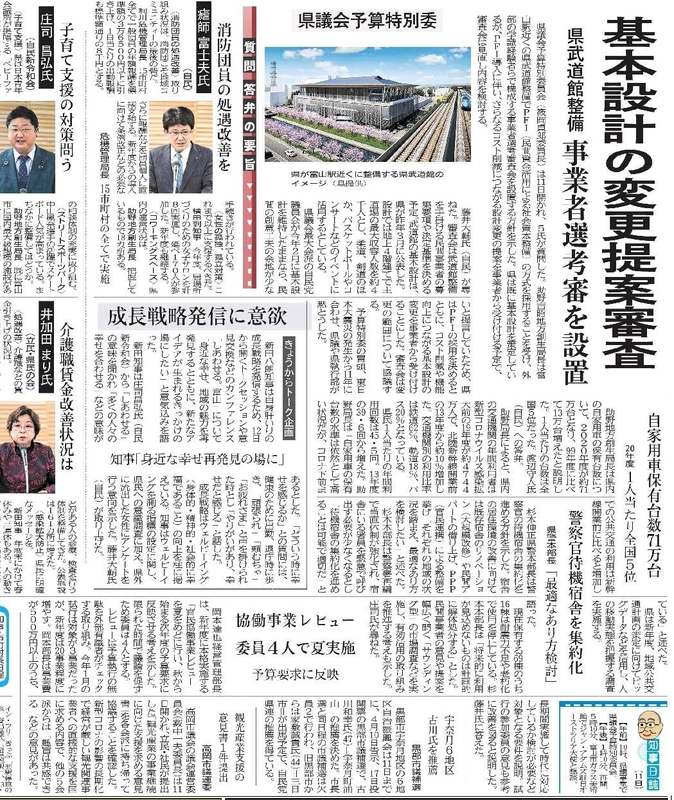 3月11日に富山県議会の予算特別委員会で質問いたしました。60分で16問、新田知事および部局長にも真摯にお答えいただきました。