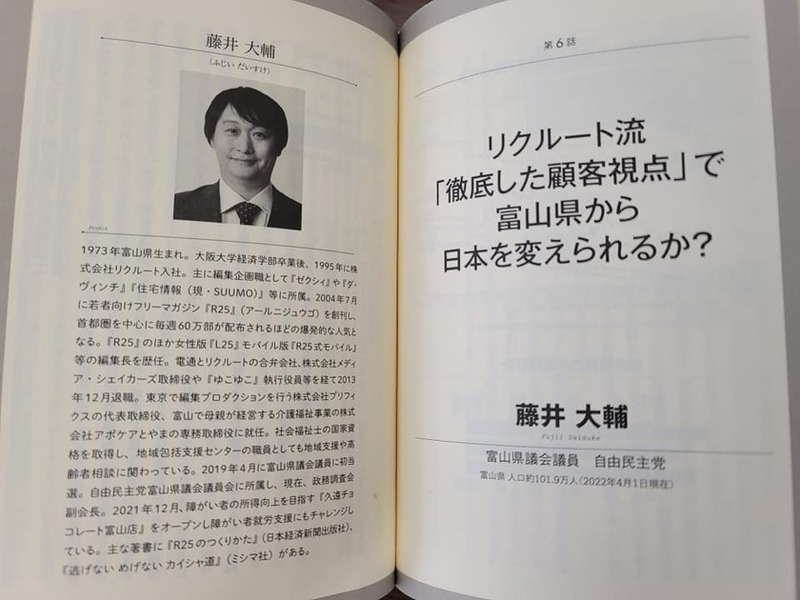 藤井は「リクルート流徹底した顧客視点で富山県から日本を変えられるか?」をテーマに書きました。
