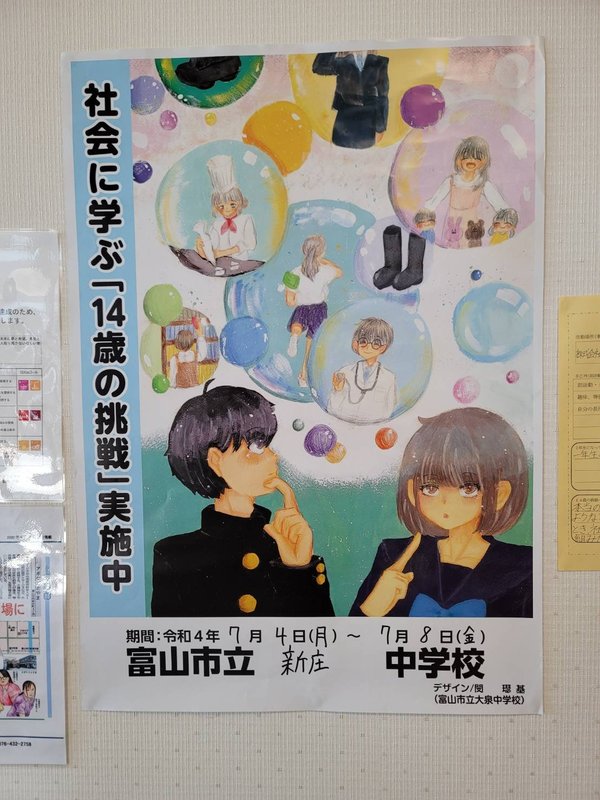 富山県では中学2年生向けに「14歳の挑戦」というキャリア教育があります。