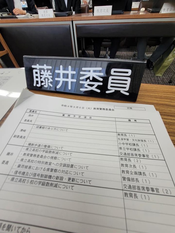 ホーム>政党・政治家>藤井 だいすけ (フジイ ダイスケ)>9月6日は富山県議会教育警務委員会に出席。