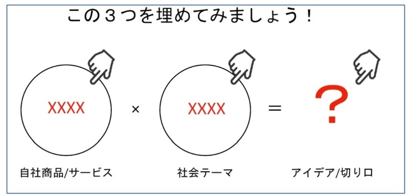 「自社商品/サービス」×「社会テーマ」=「アイデア/切り口」