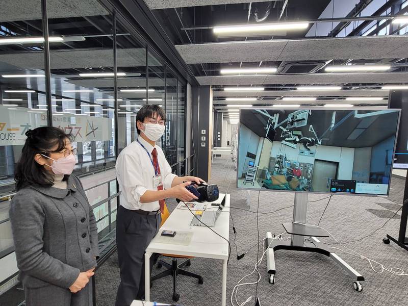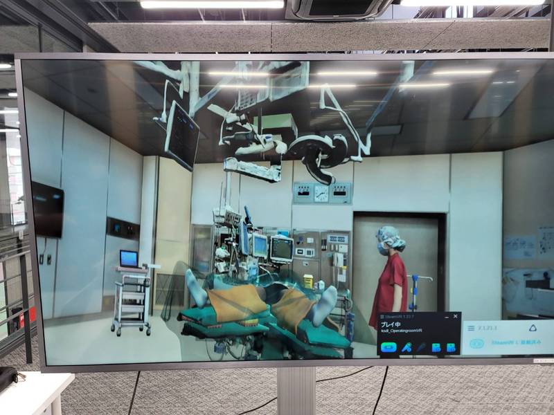 また、ポスター展示では看護学部の「手術室VRシステム」を体験してきました。県立中央病院麻酔科の手術室がCGで完全再現されており、手術を間近で見られる全国初の優れたVR教材。コロナ禍の医療人材育成のための文科省の補助金約1千万円で開発されたとのことです。
