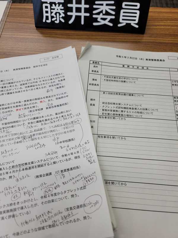 ホーム>政党・政治家>藤井 だいすけ (フジイ ダイスケ)>2月22日は富山県議会の教育警務委員会でした。