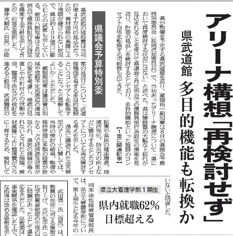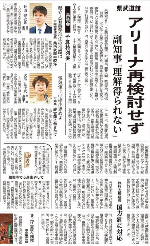 3月8日の予算特別委員会で16問の質問を行いました。 今朝の地元紙では「アリーナ再検討せず」と報道でしたが、公設では厳しいとの答弁の後、北海道ボールパークFビレッジを例に「富山でも民間投資を呼び込んでスポーツやエンタメを軸とした夢のある都市開発を」と訴えました。アリーナ、諦めませんよ。
