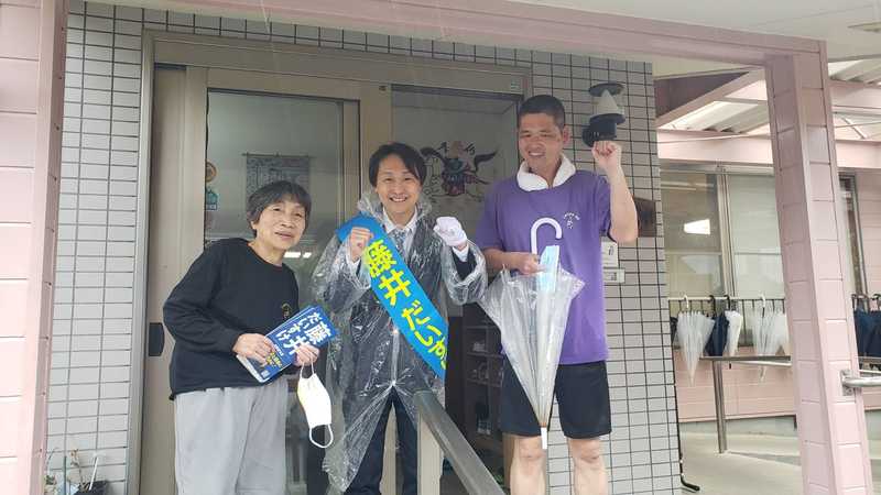 7日の午後は雨の中、街宣車とともに、地域を細かく回っております。 藤ノ木にある富山型デイサービスの総本山「このゆびとーまれ」にお邪魔しました。 突然の訪問にもかかわらず、惣万さんはじめスタッフの皆さんが優しく迎えていただきました。 持続的な地域包括ケアのため、共に連携を誓いました!