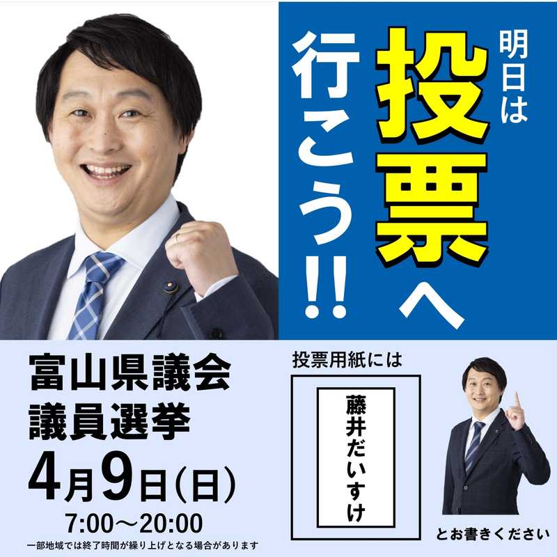 富山県議会議員選挙も、日付が変われば投開票を残すのみ。