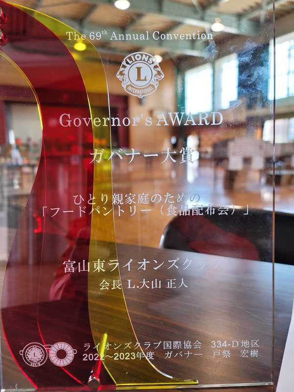 4月23日のお昼からは、所属する富山東ライオンズの食品配布会を実施。ひとり親家庭の方を中心に135組234人にお米や生活必需品をお配りしました。 しかもこの取り組み、北陸地区のガバナー大賞を受賞!富山東のメンバー以外の、多くの協力団体の皆さんのおかげです。今後も継続できるよう頑張ります。