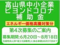 本日、ビヨンドコロナ補助金の第4次募集の要項が発表されました。補助総額10億円の規模となります。
